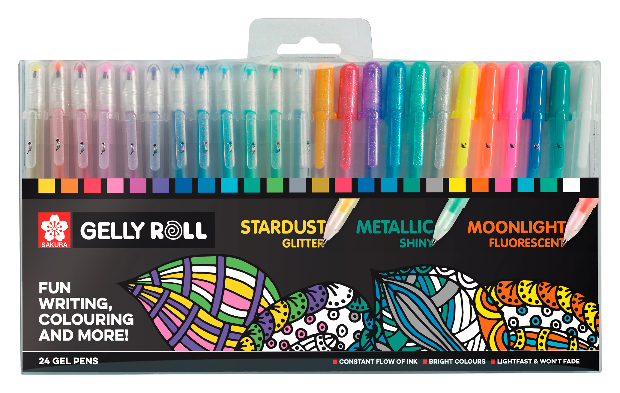 Der Sakura Gelly Roll Pen ist dank der einzigartigen Pigmenttinten-Formel auf Wasserbasis der weltbeste Gelstift. Die einzigartige Geltinten-Technologie sorgt für leichtes Schreiben ohne Druckausübung, darüber hinaus für gleichmäßige, definierte Linien während des Schreibens und Zeichnens. Der Gelly Roll ist nicht nur ein Schreibgerät, sondern eignet sich auch hervorragend für verschiedene kreative Anwendungen. Sakura hat die Technologie des konstanten Tintenflusses des Gelly Roll bereits 1984 erfunden.